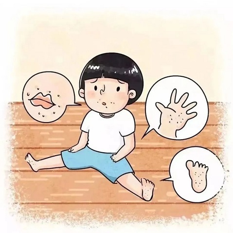 临床表现:手、足、口、臀等部位出现斑丘疹、疱疹,多数患儿有发热。如出现持续高热、精神萎靡、肢体抖动、呼吸心率增快等表现,提示可能为重症病例,需立即就医。